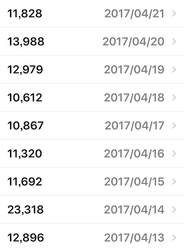 iPhoneにはデフォルトで万歩計機能もあるので、自動的に記録してくれてます。